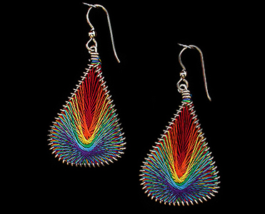 Outside Coil: Sterling Silver Inside Colors: Bright Rainbow - All silk. Red in center, orange, yellow, green and turquoise with purple on the bottom (6 colors).