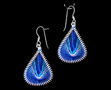Outside Coil: Sterling silver Inside Colors: royal blue silk, turquoise silk, silver metallic, royal blue silk.